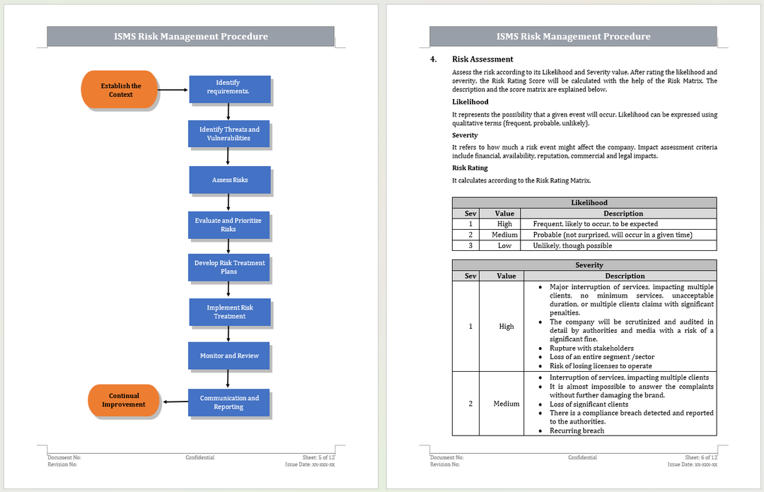 Effective risk management is the foundation of a strong ISMS. Our toolkit includes everything you need to identify, assess, and treat information security risks in line with ISO 27001. Use the RASCI Matrix to define roles and responsibilities, the Risk Register and Risk Management Procedure to capture and analyze risks, and the Risk Treatment Plan to implement and monitor appropriate controls. Together, these tools help you build a proactive, structured, and audit-ready risk management process.