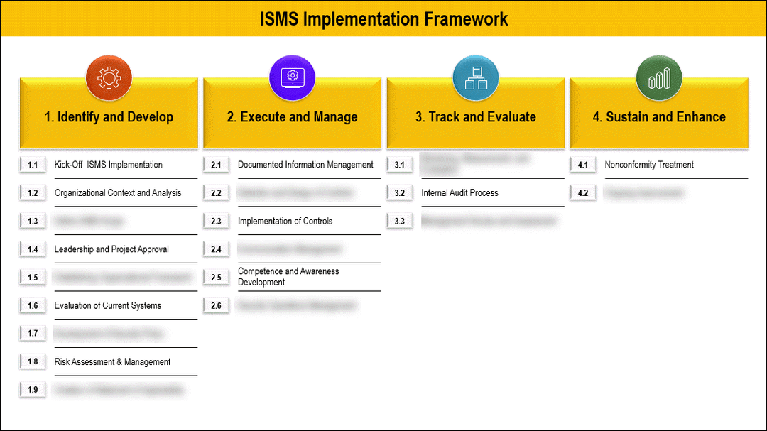 Our step-by-step Implementation Plan is your roadmap to building a fully compliant ISMS. It breaks down every ISO 27001:2022 clause and Annex A control into clear actions, timelines, and responsibilities—making the entire implementation process structured, manageable, and audit-ready. Whether you're starting from scratch or upgrading to the latest version, the plan ensures you stay aligned, on track, and fully prepared for certification.