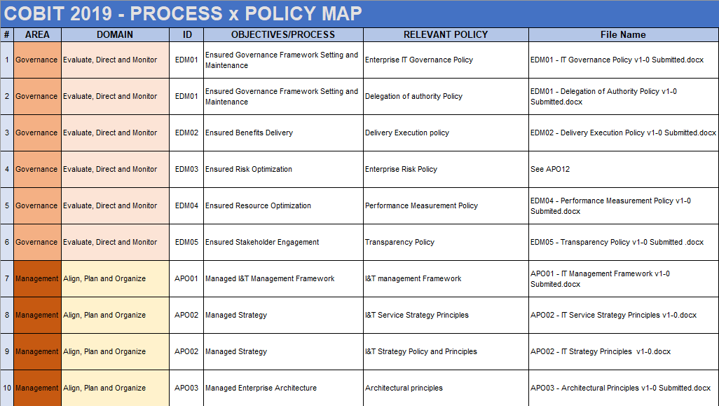 - COBIT Process Policy Mapping