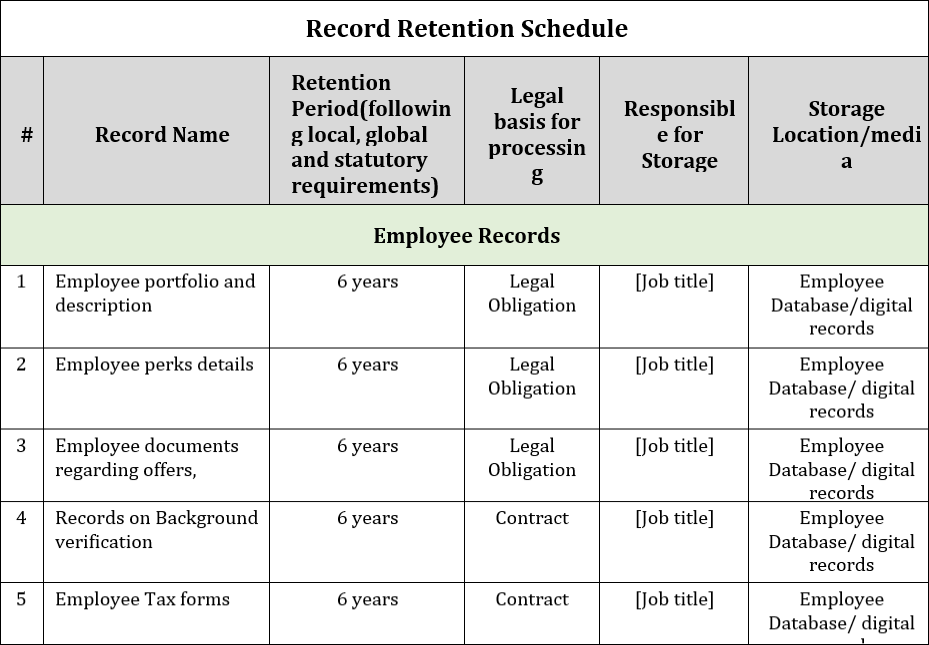 Our Data Retention Schedule Template offers clear guidelines for how long personal data should be stored, ensuring compliance with data protection regulations. It outlines specific timeframes for retaining different types of data within the organization.