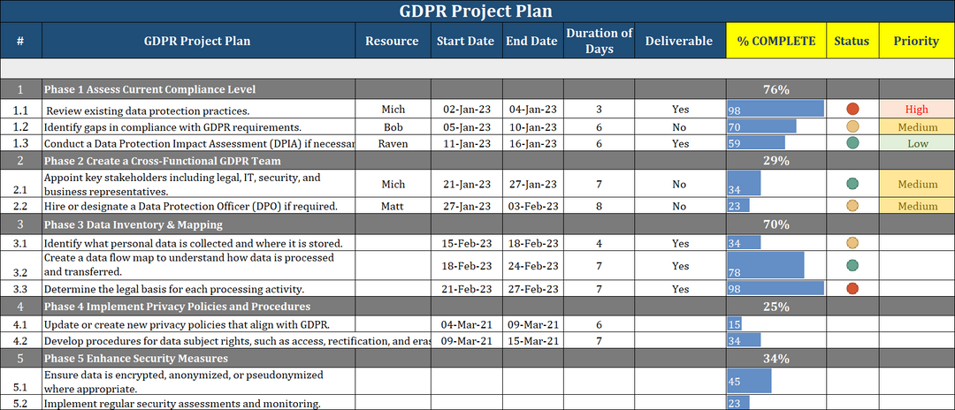 GDPR Project Plan is a structured roadmap for organizations to achieve compliance with the General Data Protection Regulation (GDPR). It outlines key milestones, tasks, and timelines for implementing necessary measures such as data mapping, policy development, and staff training.