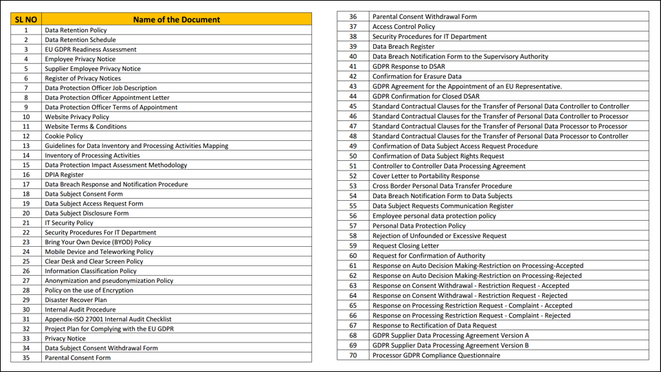 Get access to our 70 meticulously crafted, customizable templates, documents and checklists designed to ensure your complete compliance with every aspect of GDPR.